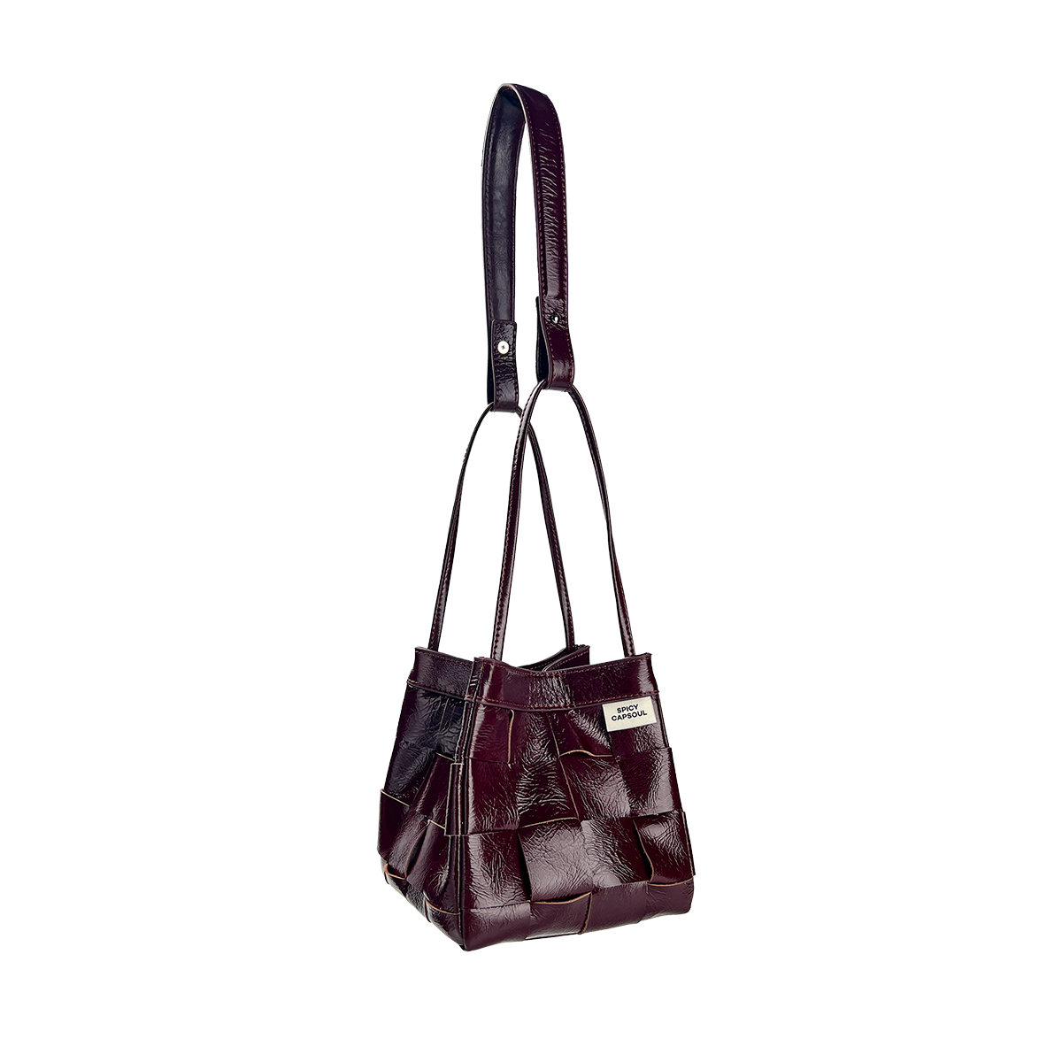 Bucket bag, chain, diamond grid bag, leather one shoulder crossbody bag