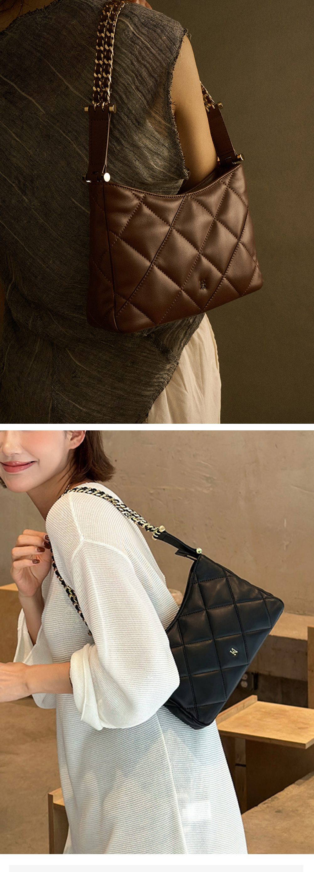 Leather rhombic chain underarm bag with advanced sense underarm bag