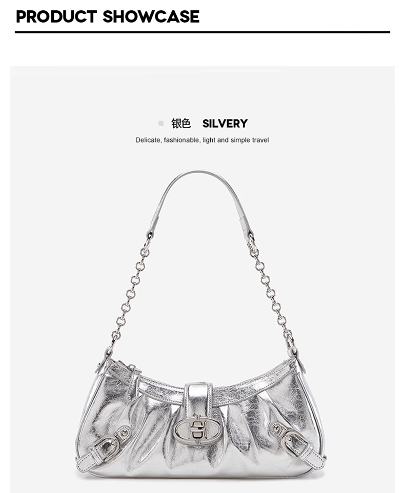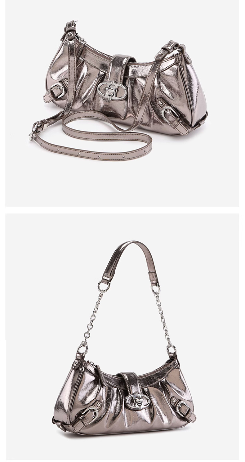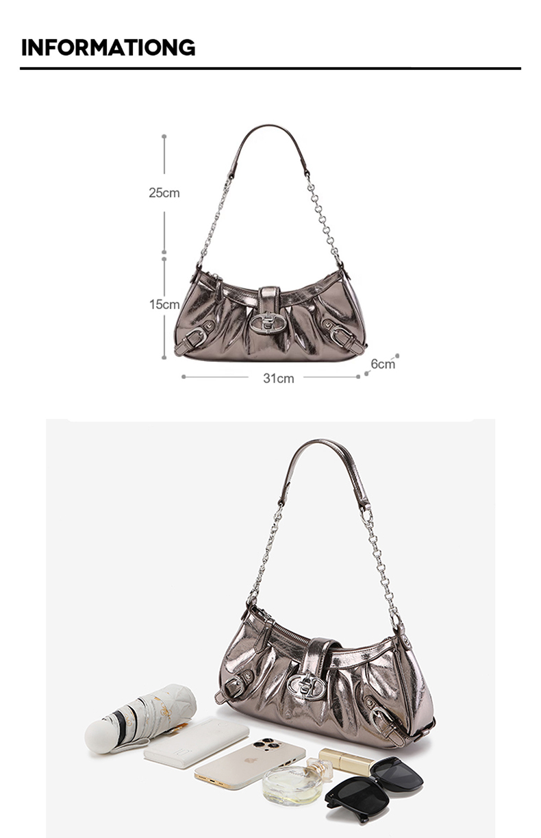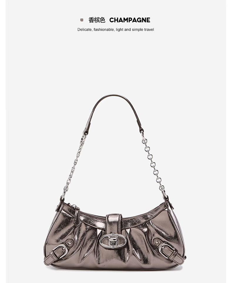 Wrinkled locomotive bag, oil wax cowhide shoulder bag, crossbody bag, chain shouder bag