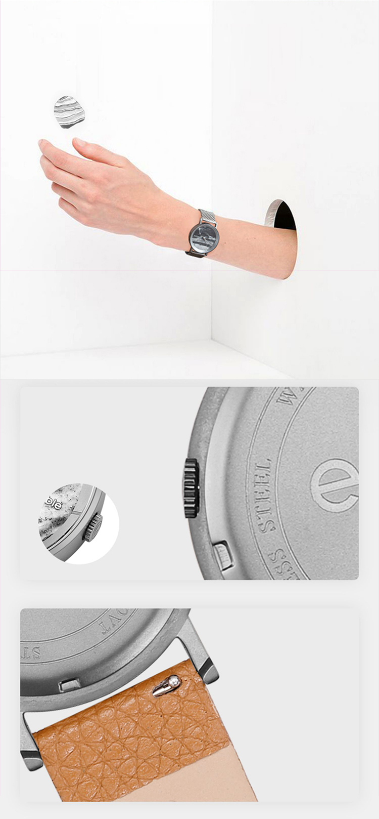 A niche and retro-designed watch with a simple and artistic temperament for both men and women. It features a natural marble dial